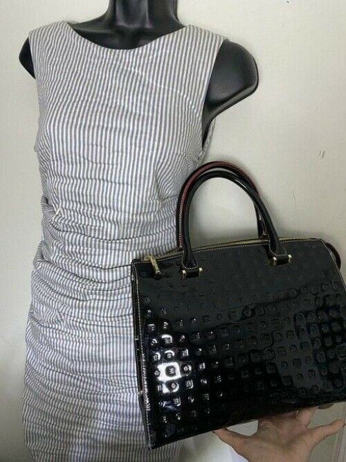 Arcadia Handbag Made In Italy Black Patent Leather Tote
