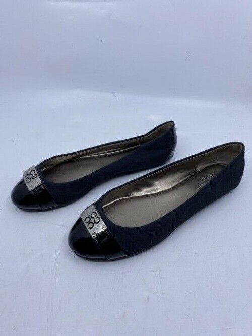 Black Leather Flats Featuring A Silver Front Plaquard With The Signature Coach 'C' On It. Style And Comfort Meet! Rounded Toe Slip Onoff Size 5.5 In Gently Pre Loved Condition. Bed As Shown In Photos. Doesn't Include Box Or Dust Bag.