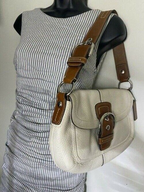 COACH Medium White Brown Leather Shoulder Bag/ HandBag
