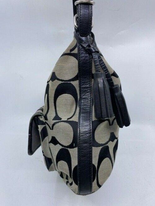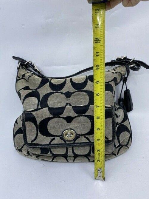 Coach Medium Msrp Black Beige Jacquard Fabric Shoulder Bag