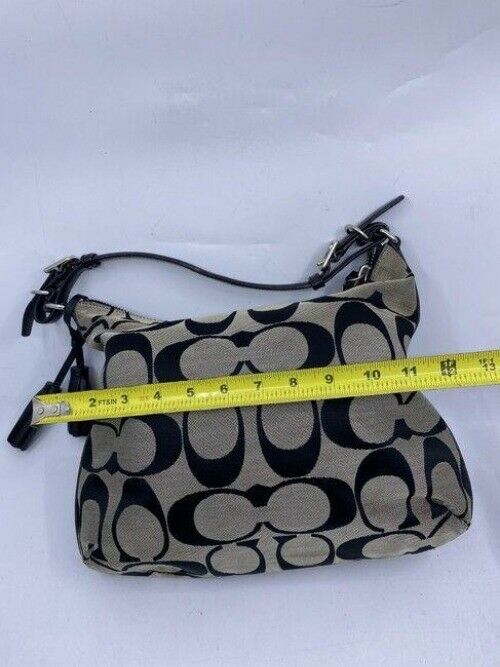 COACH Medium Black Beige Jacquard Fabric Shoulder Bag Msrp $349
