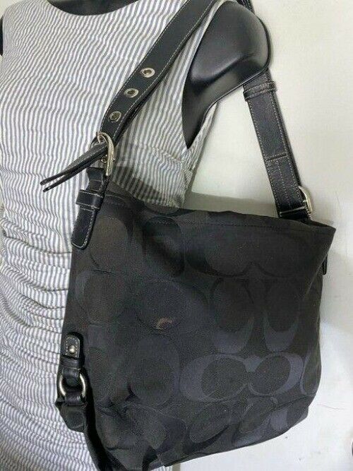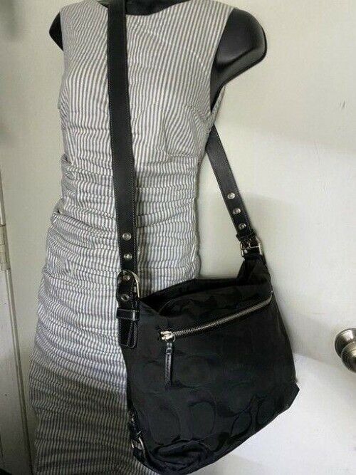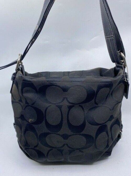 COACH Medium Black Gray Jacquard Fabric Shoulder Bag Tote Msrp $349