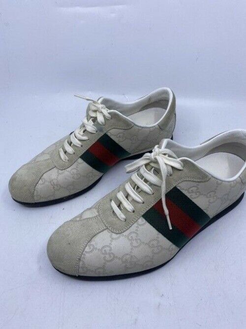 Gucci White Leather Gg Lace Up Redgreen Stripe White Sneakers Size Us