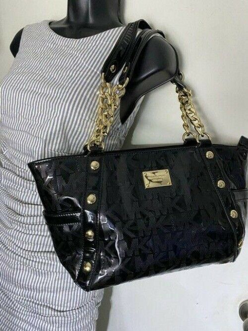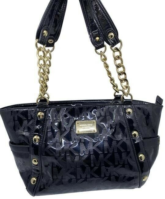 michael kors bag black patent leather tote