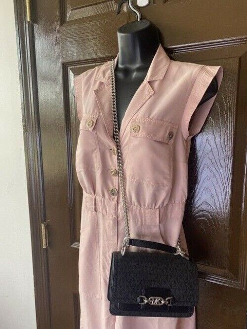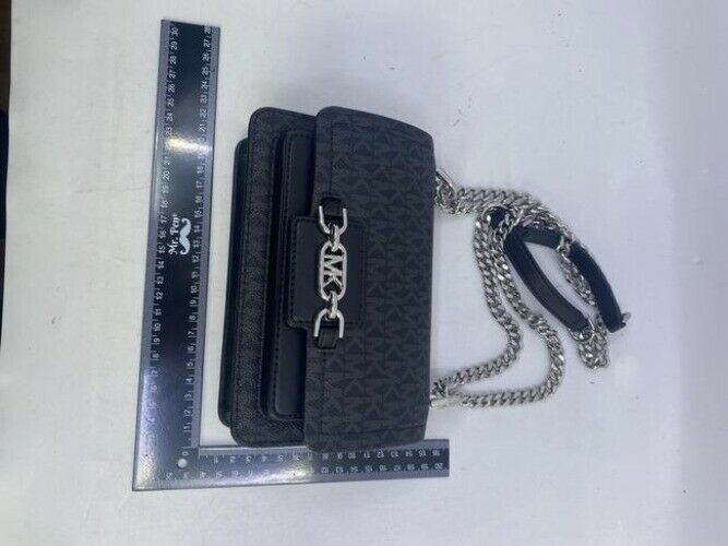 Michael Kors New Ginny Medium Logo Black Coated Canvas Cross Body Bag