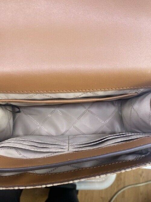 Michael Kors New Medium Logo Allover Brown Coated Canvas Cross Body Bag