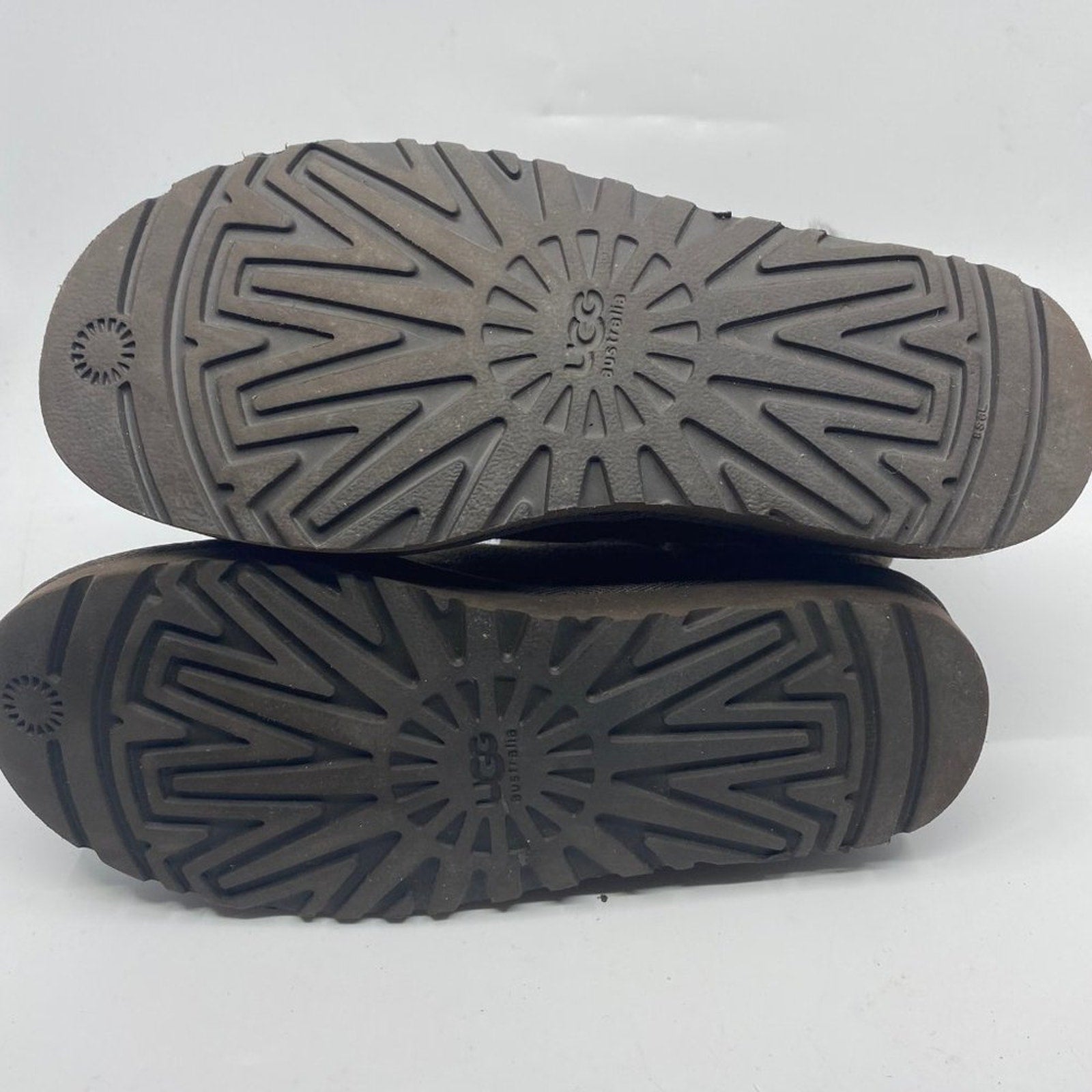 Mid UGG Classic boot originally worn by surfers to keep warm after early-morning sessions, & has since become iconic for its soft sheepskin and enduring design. The Classic features a lightweight sole to increase cushioning, durability, and traction. These versatile boots pair well with practically anything – try loose boyfriend jeans & a velvet top. Sheepskin and suede, Wood button and elastic closure, Treadlite by UGG™ outsole, good condition ready for continued use. Msrp $140.