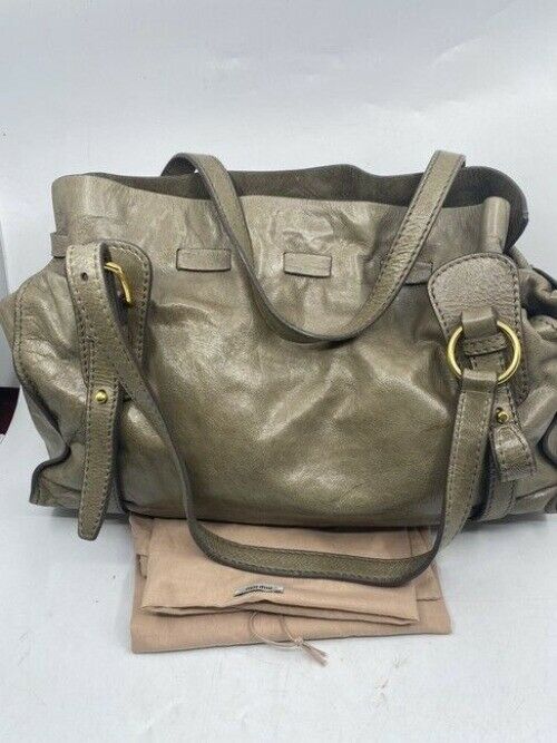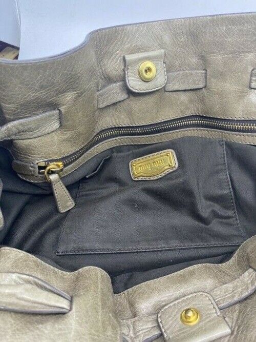 Miu Miu Tote Alluminio Vitello Peggy Bow Tan Leather Shoulder Bag