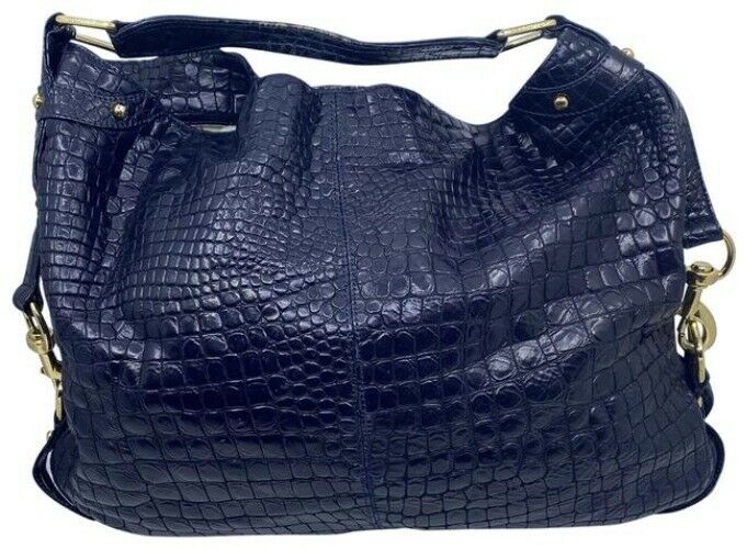 Rebecca Minkoff Croc Embossed Black Leather Shoulder Bag
