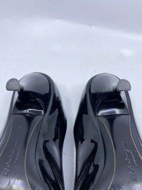 Salvatore Ferragamo Black Ribes Open Toe Bow Pumps Size Us