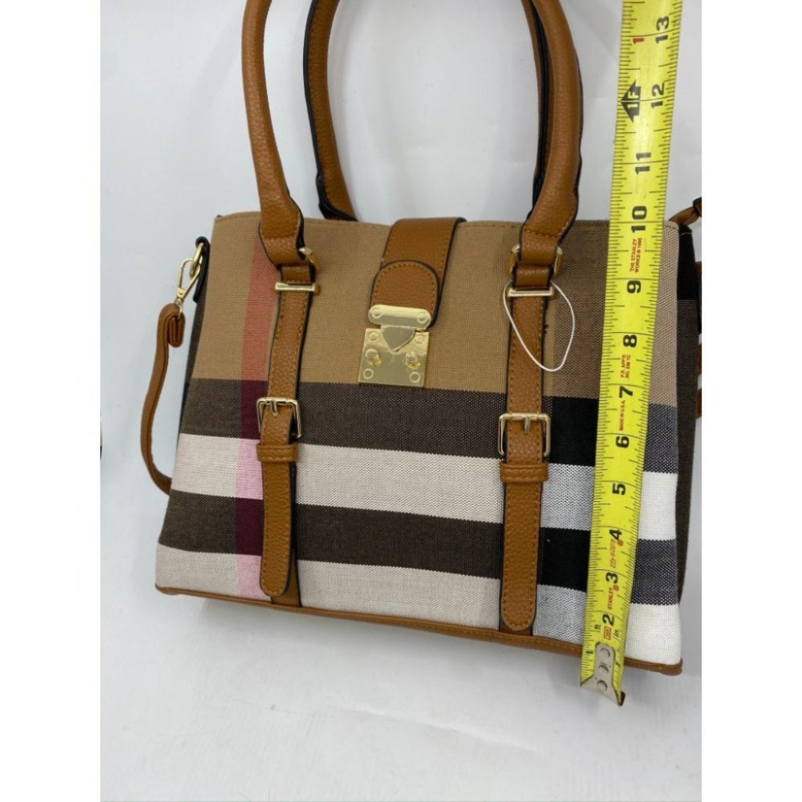 NWT! ClosetsNYC Large Plaid Tote Bag w/ Crossbody Strap